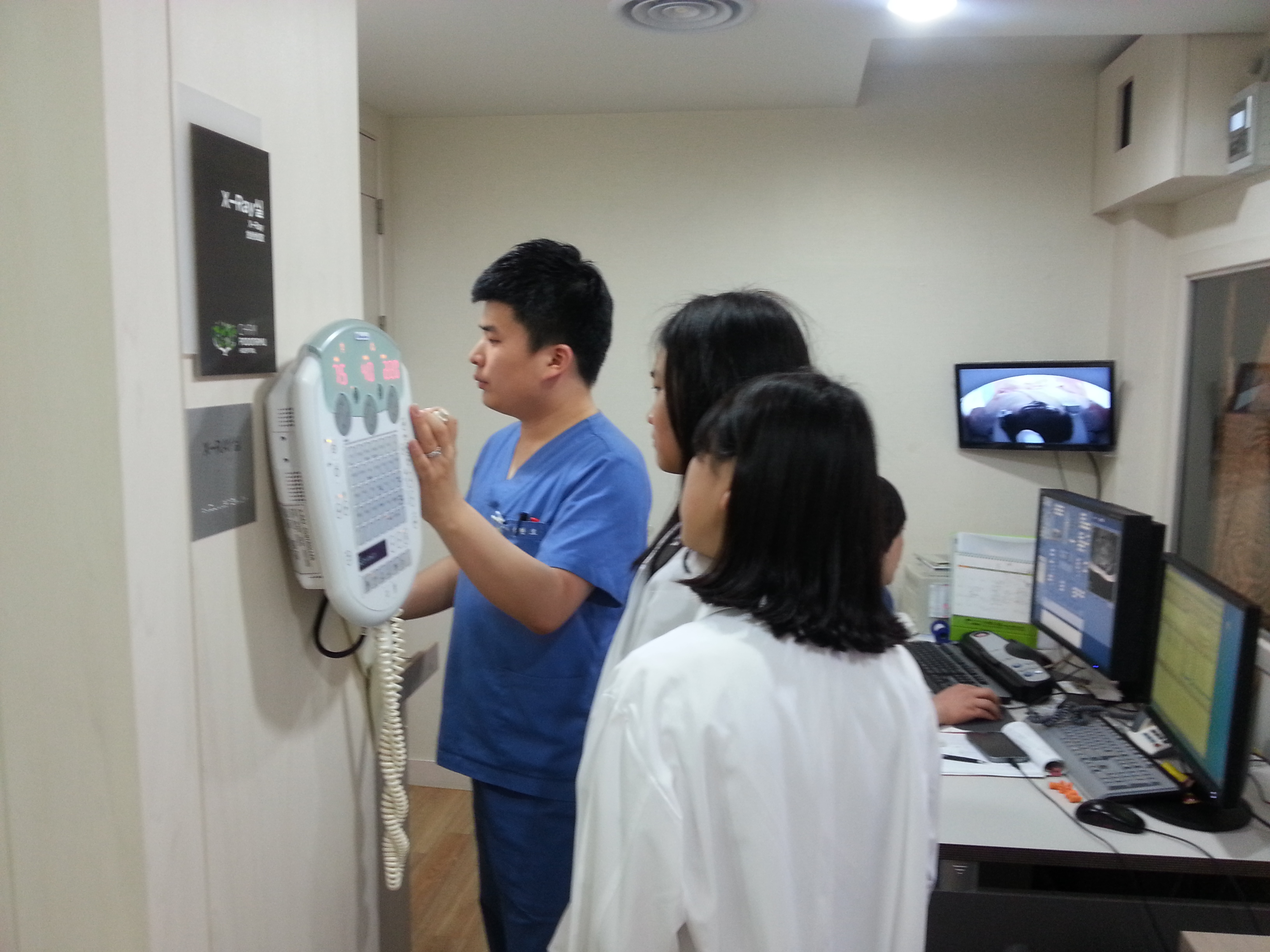 X-ray 검사를 하면서 친구들이 찍는 모습을 서로 관찰하고 있는 모습입니다~