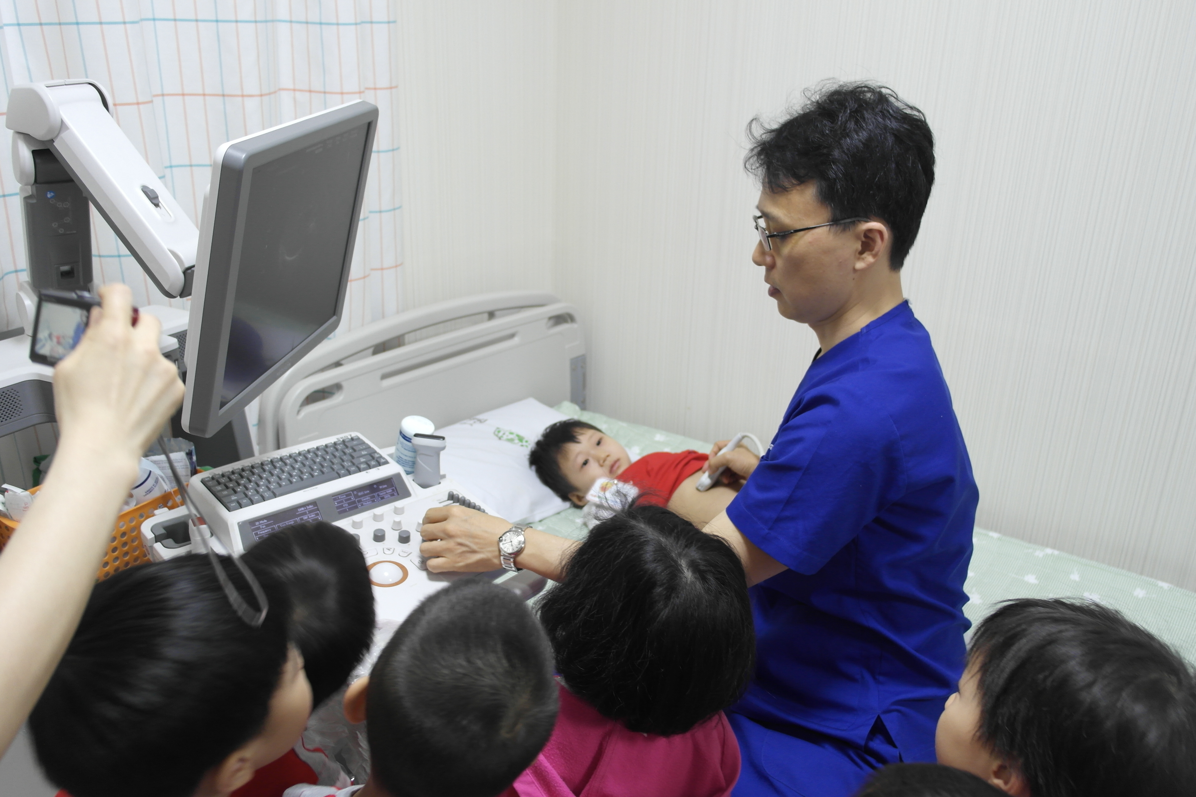 <영상의학과에서 친구가 직접 초음파 검사를 하는 모습을 지켜보는 아이들^^>