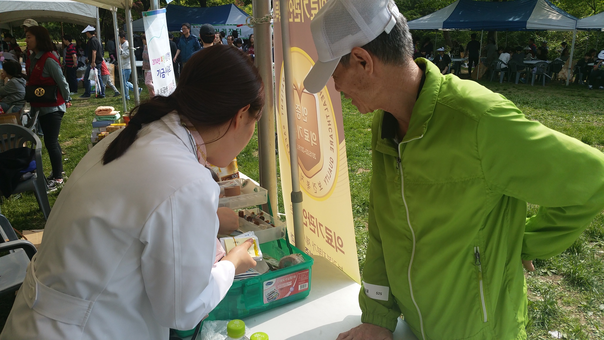 참포도나무병원은 혹시나 모를 안전사고에 대비하여 앰블런스를 지원하여 간호사 1명과 직원 1명이 대기하고 있었습니다.