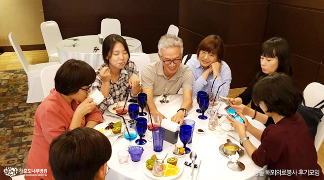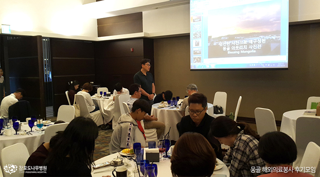 몽골 후기모임에는 이동엽 병원장님을 비롯하여 봉사대원들이 모여 몽골의 추억을 되짚어보며 식사를 즐겼는데요. 이번 몽골 해외의료봉사는 총 5번의 준비모임을 시작으로 몽골문화원 방문, 안산M센터 방문 그리고 무더웠던 여름의 몽골 해외의료봉사, 후기모임을 끝으로 대단원의 막을 내렸습니다.