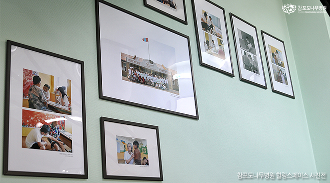 무사히 마친 2017 참포도나무병원 몽골 해외의료봉사. 이번 해외의료봉사에 참여하지 못하여 아쉽다고요? 해외의료봉사 모습이 궁금하다고요? 그래서 준비했습니다. 저희 참포도나무병원 본관에 오시면, 힐링스페이스라는 공간이 준비되어 있는데요. 2층과 3층 사이에 이번 몽골 해외의료봉사의 추억을 사진으로 담았습니다.