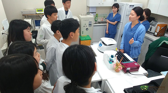 안녕하세요. 참포도나무병원입니다. 풍성한 한가위, 추석을 기다리는 9월의 어느 날, 참포도나무병원에 귀여운 손님들이 찾아왔어요. 바로 은성중학교 9명의 학생들인데요. 미래 의사를 꿈꾸는 마음을 안고 저희 병원을 찾아준 아이들, 이날 아이들을 위한 직업체험학습이 진행되었습니다.