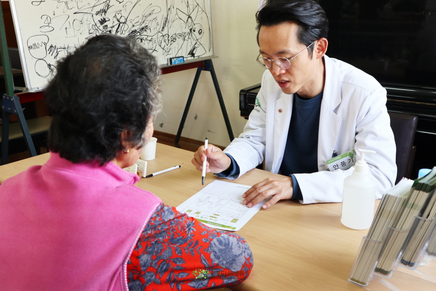 어르신 분들의 불편한 곳을 세심하게 살펴보고