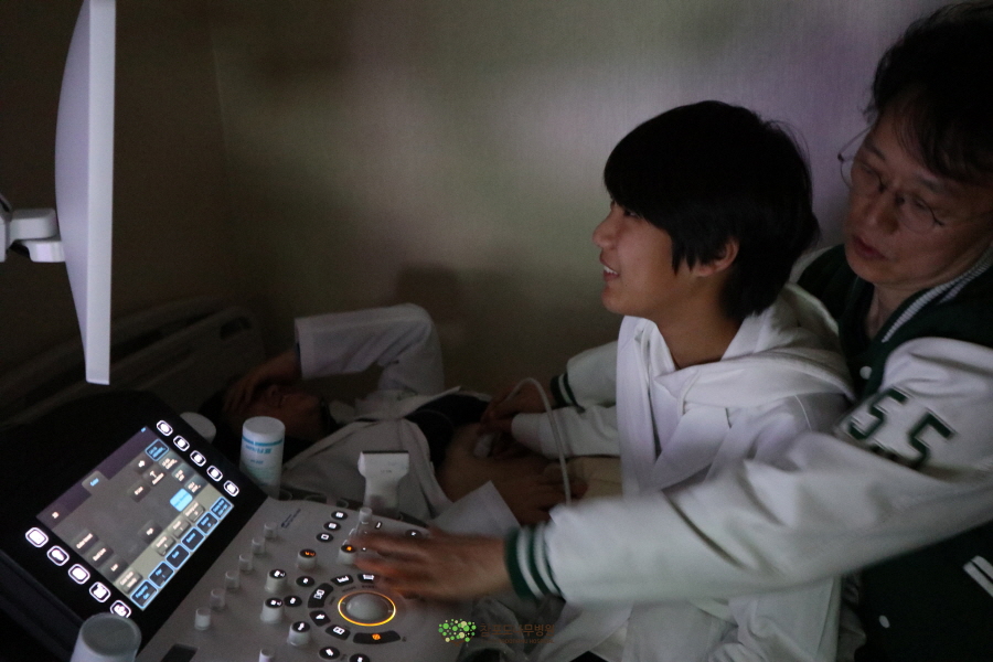 그리고 초음파 검사 기계를 체험하는 시간을 가졌는데요.