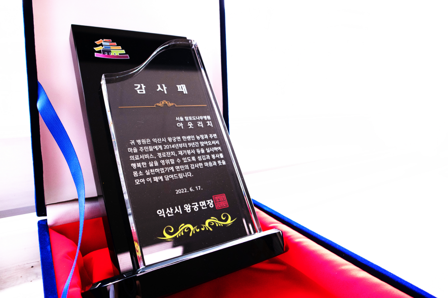 감사패까지 전달해주신 왕궁마을 주민분들께