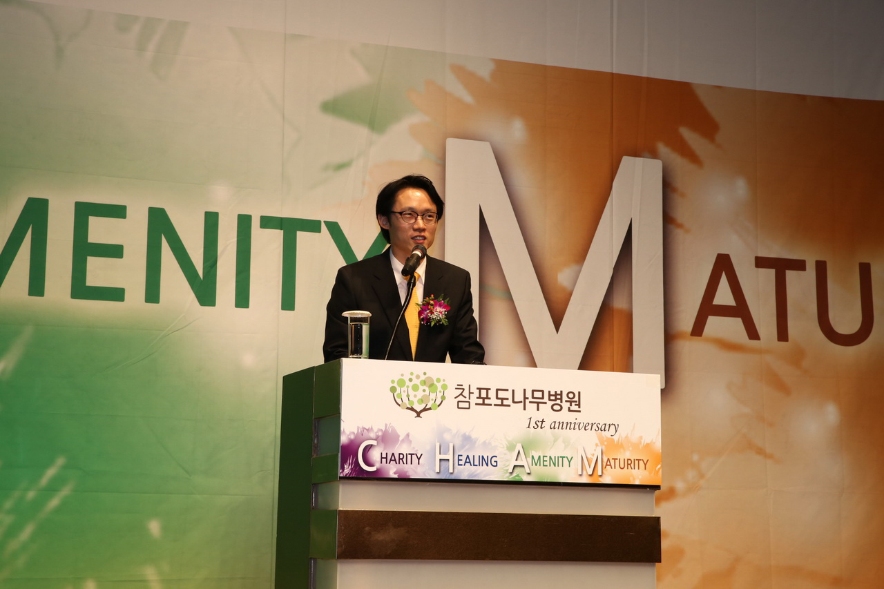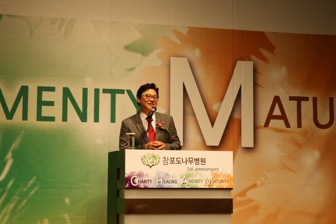 참포도나무병원이 개원 1주년을 맞아, 지난 1년 동안 함께해온 전 부서 직원들과 각계 각층의 인사들을 초청, 한자리에 모여 ‘참(CHAM-Charity, Healing, Amenity, Maturity)’ 이라는 참포도나무병원의 설립 이념을 다시한번 되새기고, 앞으로 나아갈 방향을 굳건히 하는 자리를가졌습니다.