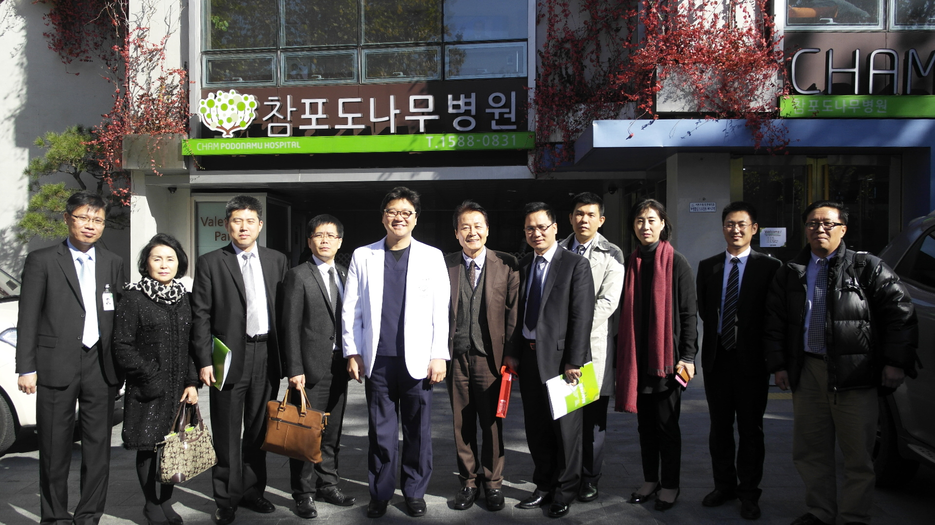 이날 협약식을 위해 상해인애병원 의료진 Dr.Liu Rui, Dr.Lan Jian, Dr.Liu QingYang, Dr.Zhu QiGang 및 임직원 분들이 참포도나무병원을 방문하셨습니다.